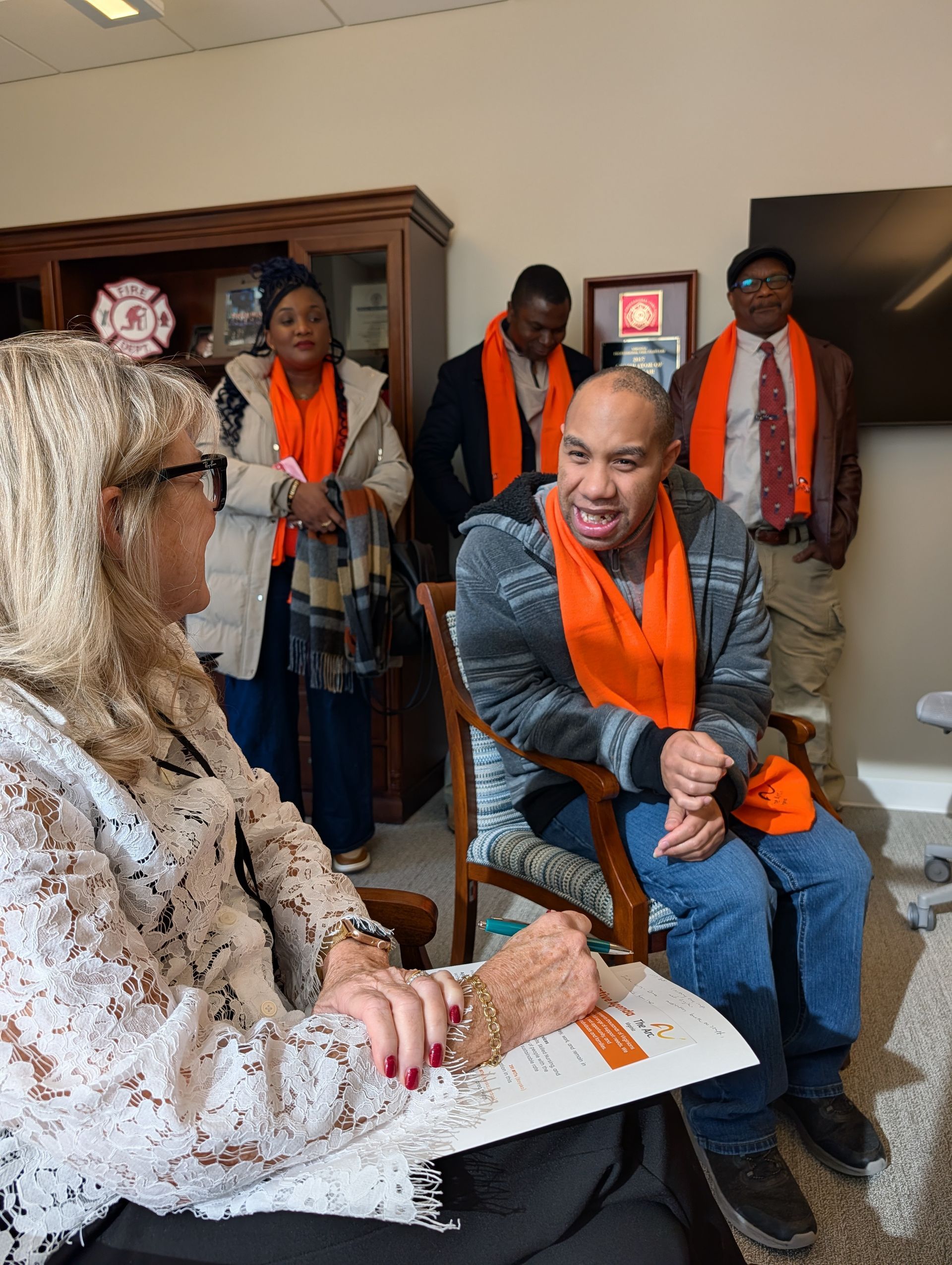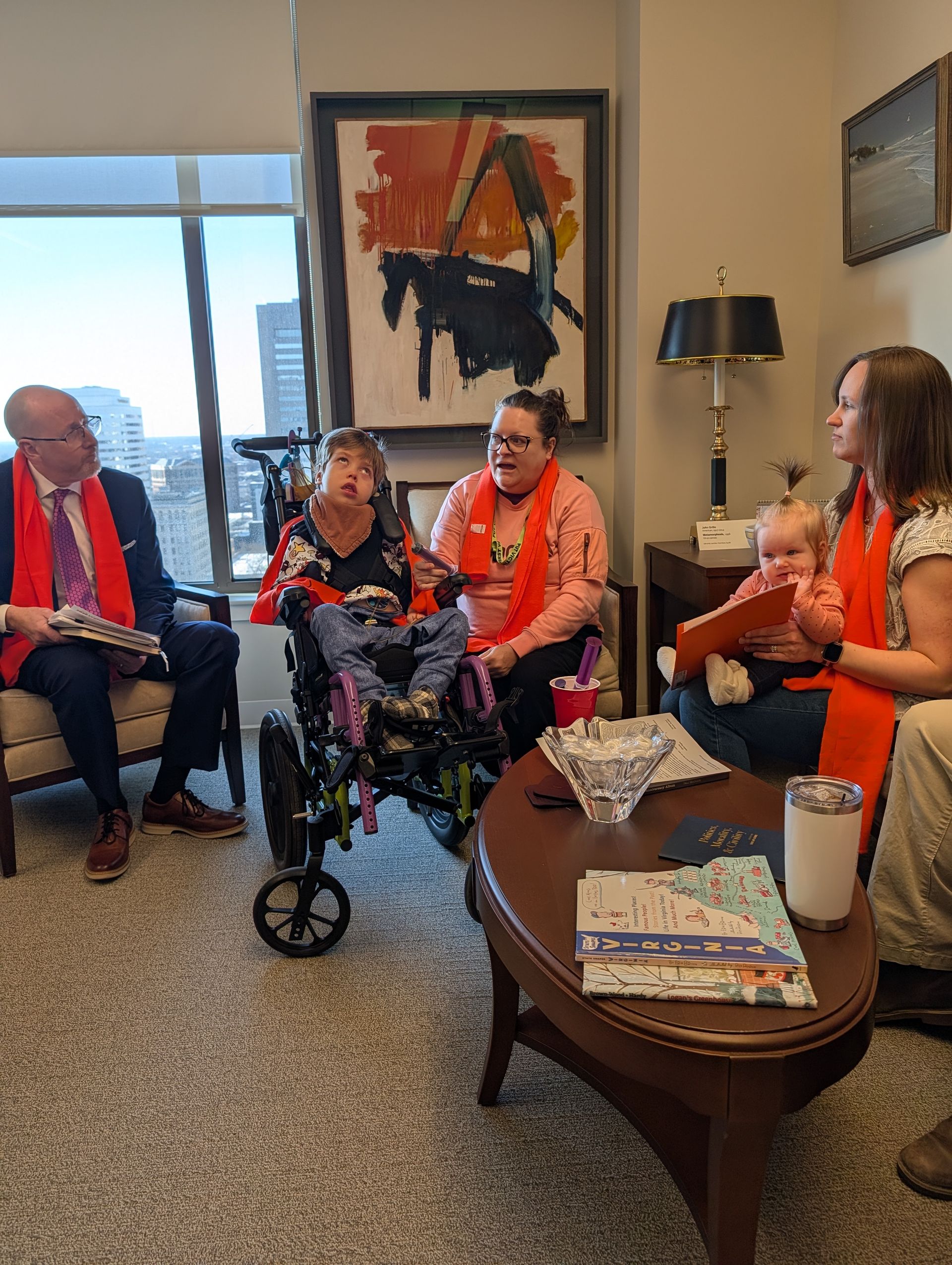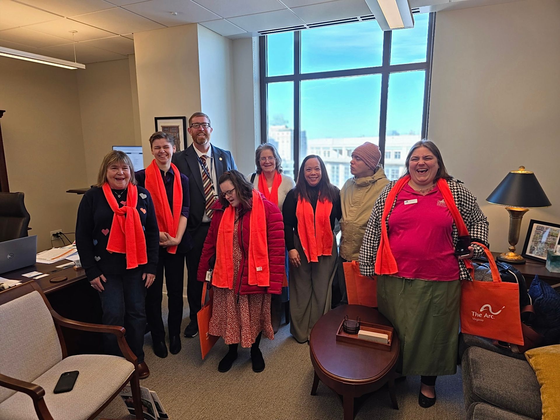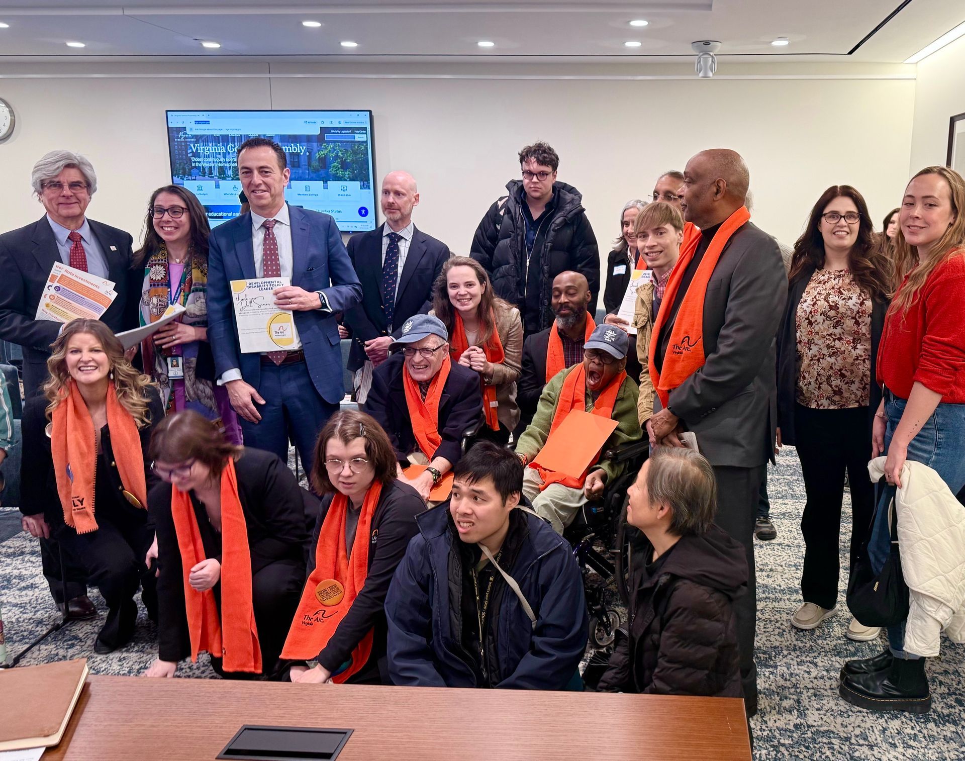 This session, we hosted 5 DD Advocacy Days. Even though this year's wild winter weather kept things... exciting, advocates from Southwest, Tidewater, Central, Blue Ridge, and Northern Virginia showed up. We filled the halls of General Assembly with orange scarves and had meetings with over 40 legislative offices!